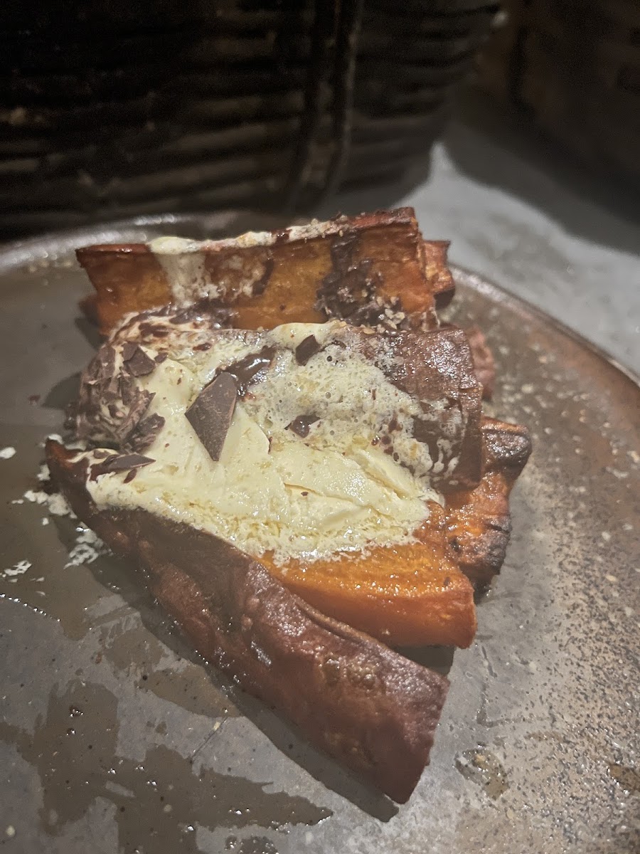 SO DELICIOUS, great ambiance, and leave room for dessert! The restaurant has a very modern feel to it with long tables which are great for accommodating larger groups. It was also very easy to walk in with a larger group. However, our group was not super happy with the staff - though helpful they forgot our orders a few times and weren't the most attentive. For the food we started with some appetizers - wings, truffle tuna roll and crab pasta. The crab pasta was definitely a stand out and really loved the sauce (though wish it maybe had a bit more spice). The truffle roll was also so great with the truffle flavor coming out very subtly. For the main, I ordered the Filipino salmon which was cooked to perfection! The sauce was so great and paired very well with the salmon. I also loved the side of Brussels sprouts which were so crispy and great source of veggies with your meal. The star of the show was the brownie in the desserts. It was so perfectly warm and gooey with great flavors coming from the sesame. The crème brûlée was also very very creamy and very fun to watch.